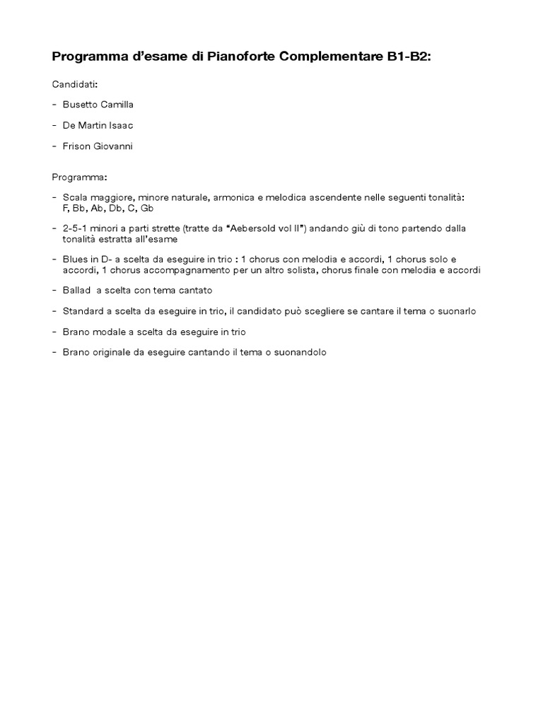 Programma d’esame di Pianoforte Complementare B1-B2: