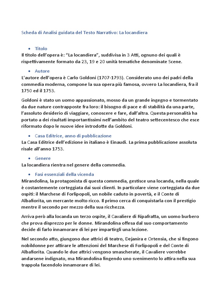 Scheda di Analisi guidata del Testo Narrativo: La locandiera
