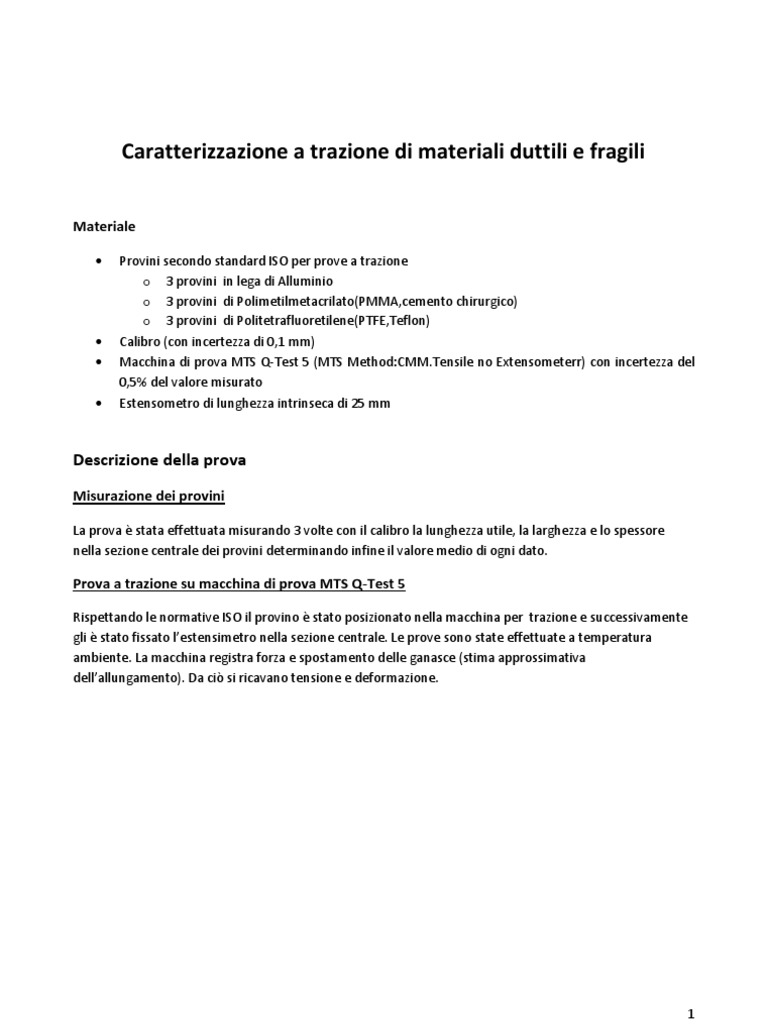 Caratterizzazione a trazione di materiali duttili e fragili