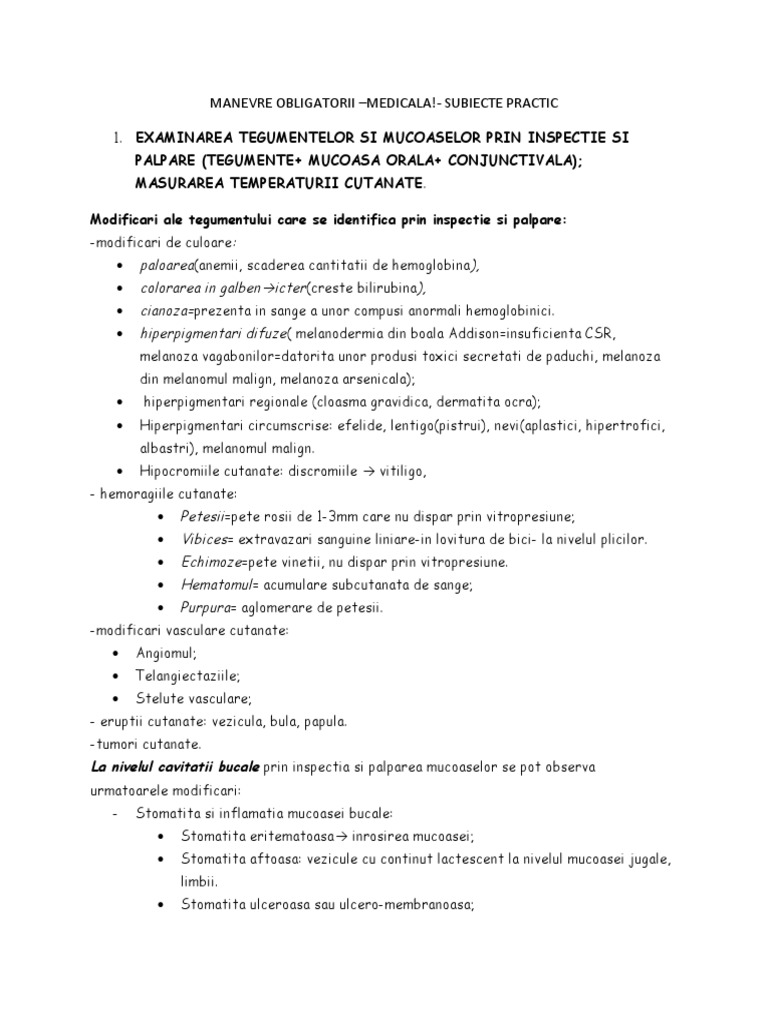 1. EXAMINAREA TEGUMENTELOR SI MUCOASELOR PRIN INSPECTIE SI