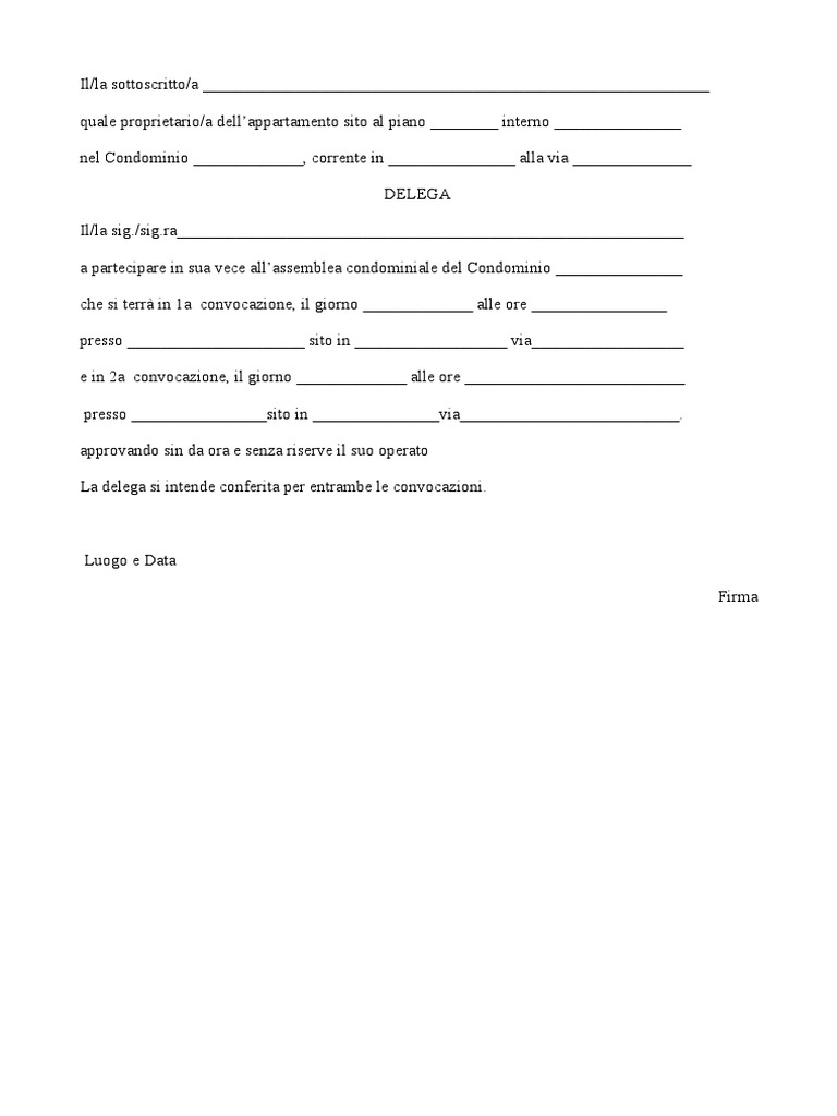 a partecipare in sua vece all’assemblea condominiale del Condominio _______________