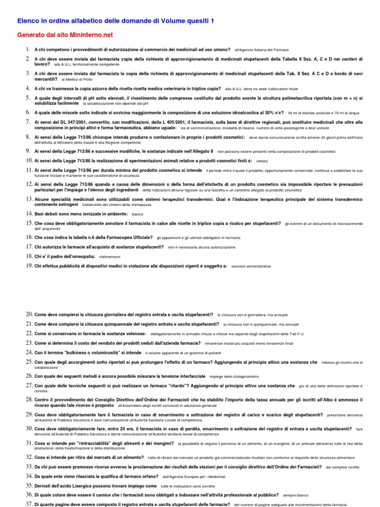 40. Dovendo confrontare sali diversi di una medesima sostanza allo scopo di valutare la corrispondenza con le dosi massime stabilite dalla Farmacopea Ufficiale,