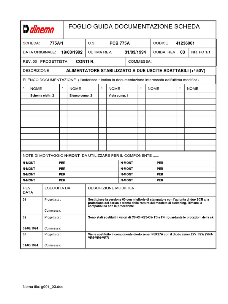 DATA ORIGINALE: 18/03/1992 ULTIMA REV. 31/03/1994 GUIDA REV 03 NR. FG 1/1