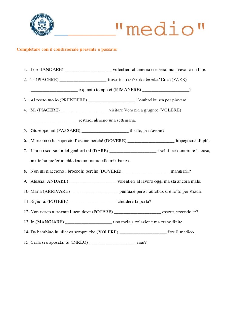 1. Loro (ANDARE) ____________________ volentieri al cinema ieri sera, ma avevano da fare.