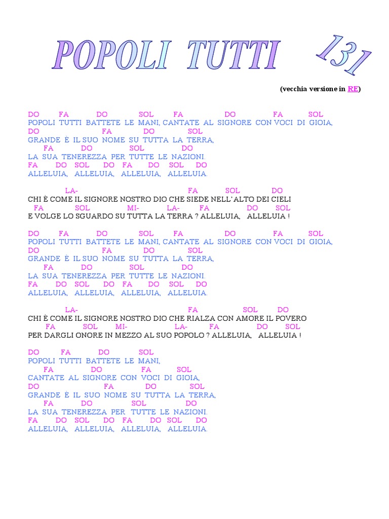 POPOLI TUTTI BATTETE LE MANI, CANTATE AL SIGNORE CON VOCI DI GIOIA,