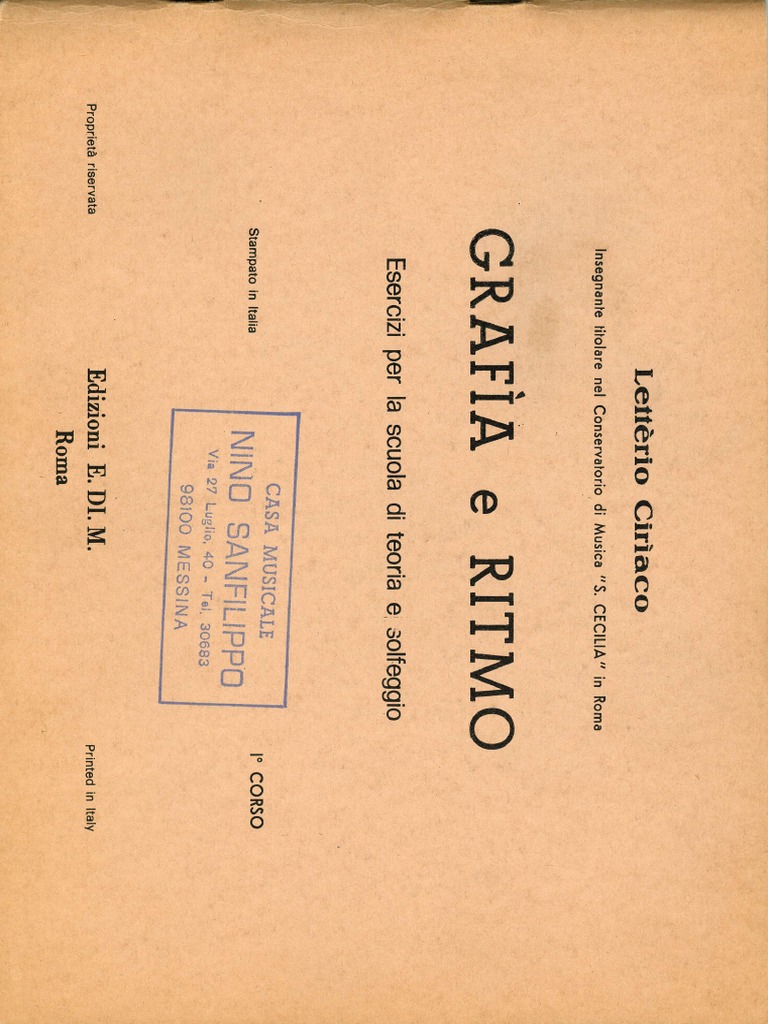 I Corso - Compendio Di Teoria Musicale - Letterio Ciriaco