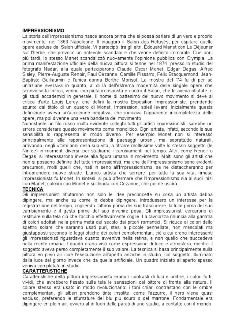 impressionista fu Monet. In sintesi, si può affermare che l'Impressionismo sia ai suoi inizi