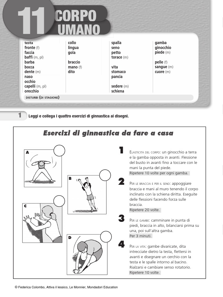 1 Leggi e collega i quattro esercizi di ginnastica ai disegni.