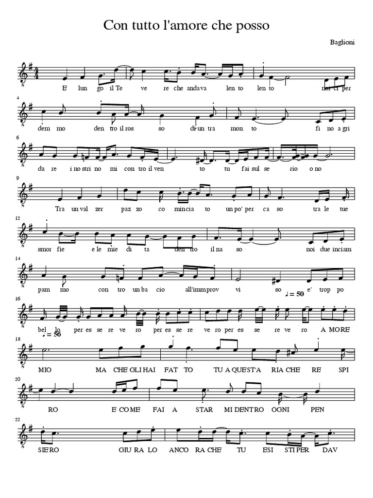 VE RO A MO RE MIO MA CHE CO S'HAI TU DI DI VER SO DAL LA