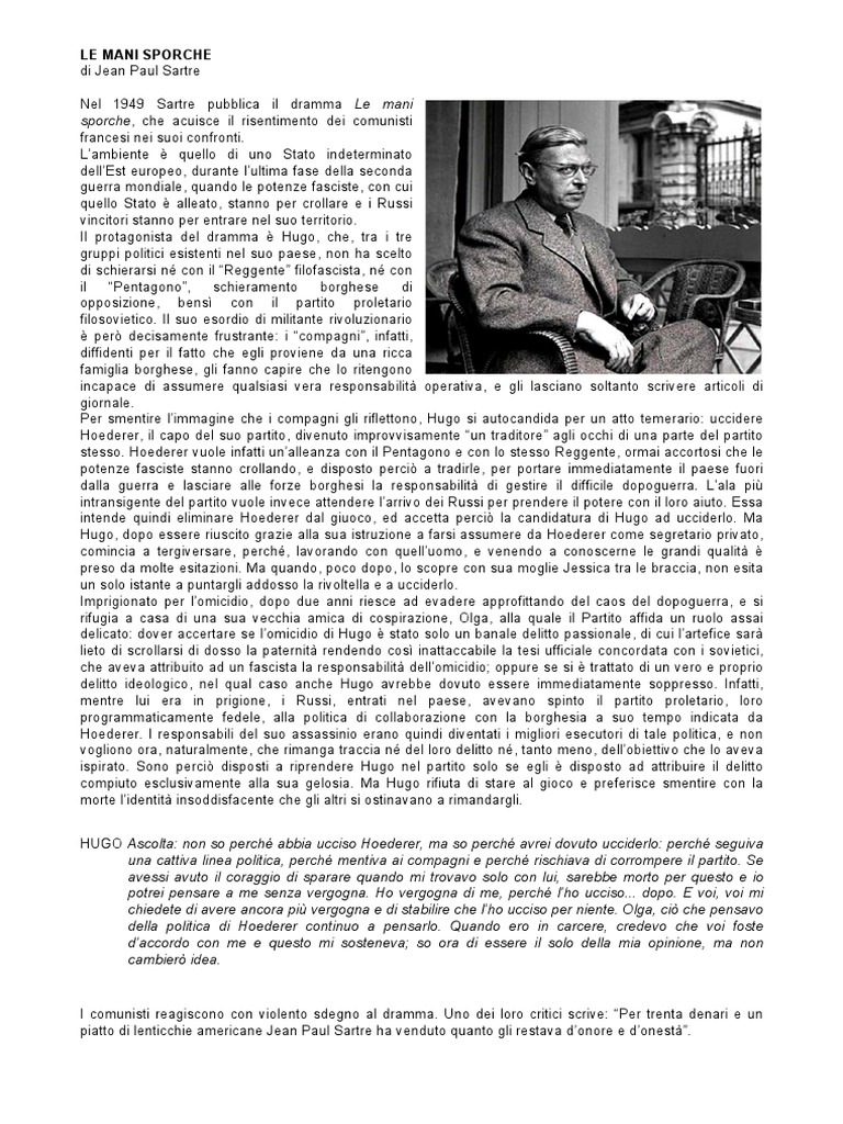 HUGO Ascolta: non so perché abbia ucciso Hoederer, ma so perché avrei dovuto ucciderlo: perché seguiva