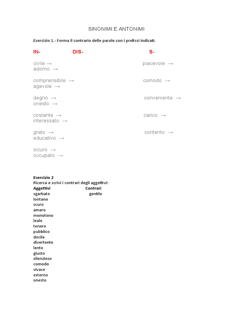 SINONIMI E ANTONIMI