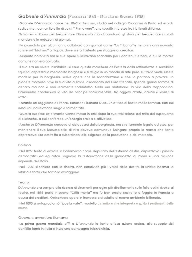 ⋅Gabriele D’Annunzio nasce nel 1863 a Pescara, studiò nel collegio Cicognini di Prato ed esordì,