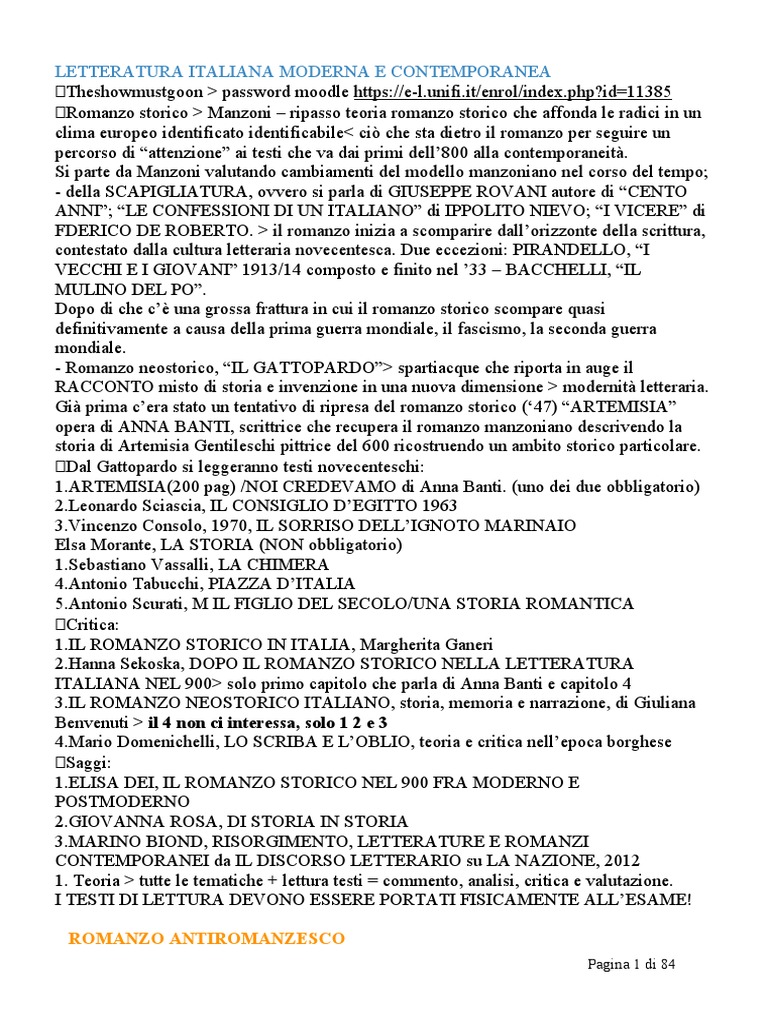 Letteratura Italiana Moderna e Contemporanea
