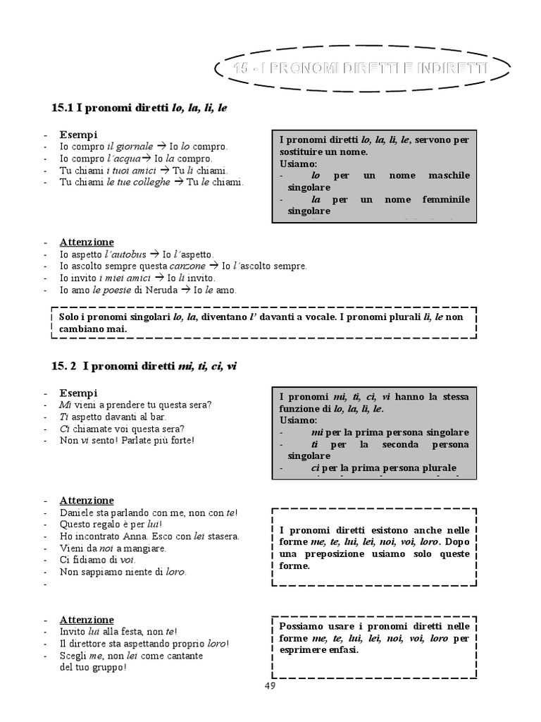 15 - I PRONOMI DIRETTI E INDIRETTI