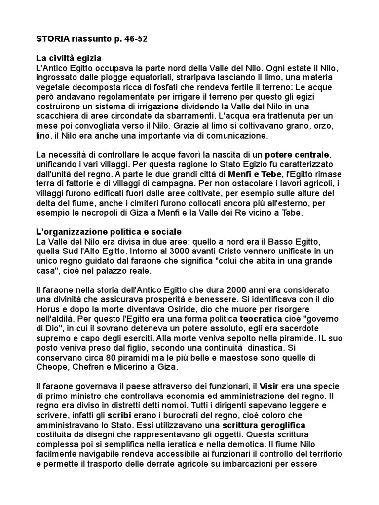 L'Antico Egitto occupava la parte nord della Valle del Nilo. Ogni estate il Nilo,
