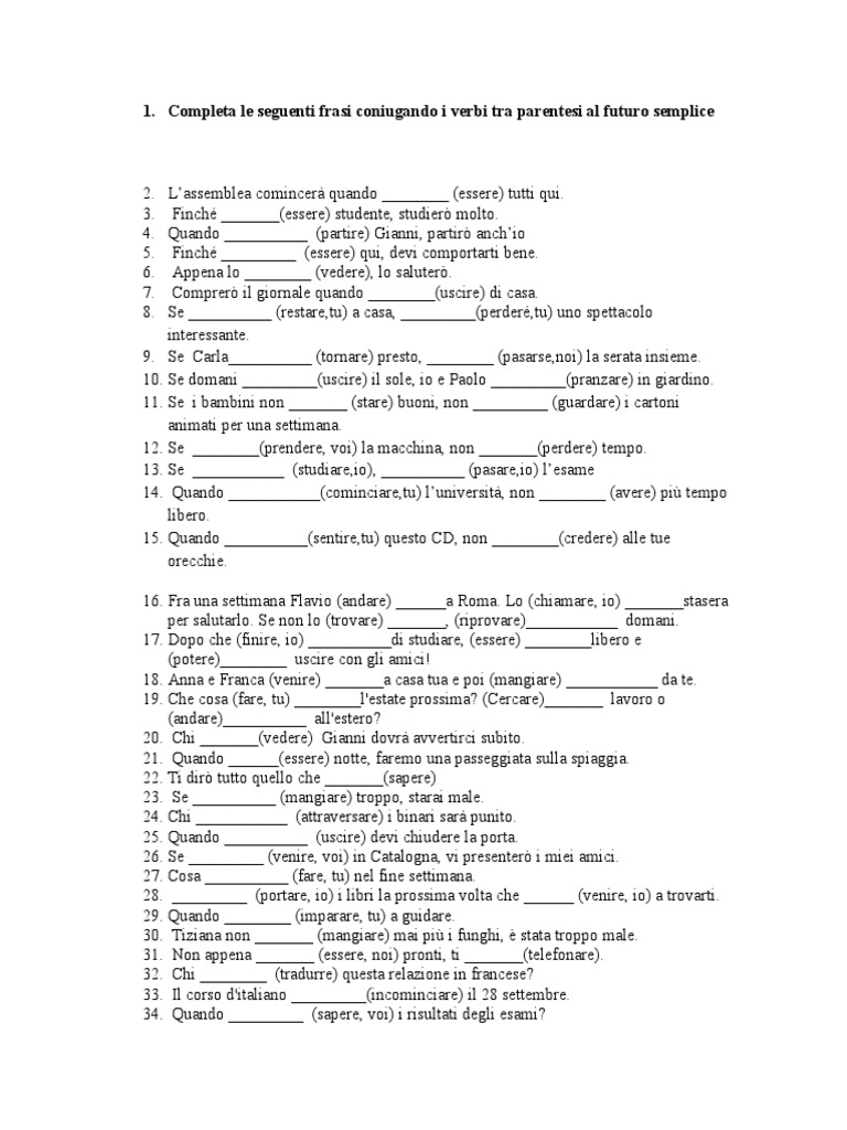 21. Quando ______(essere) notte, faremo una passeggiata sulla spiaggia.