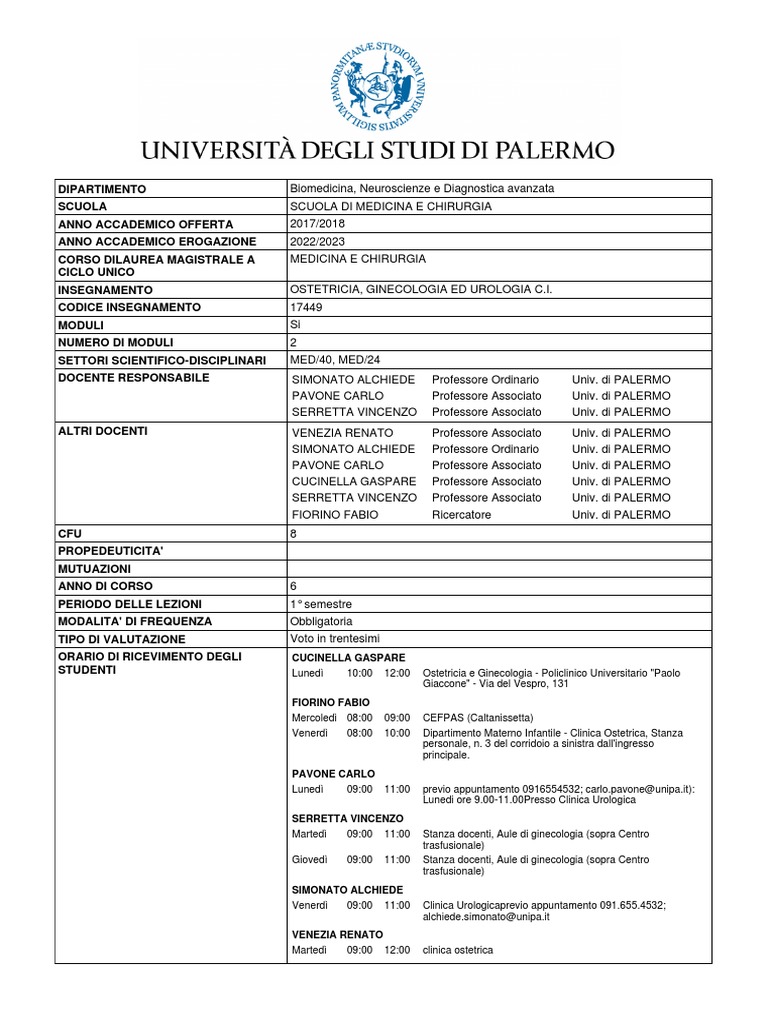 di Urologia Ogni studente partecipera' all’anamesi ed alla stesura della cartella ambulatoriale,