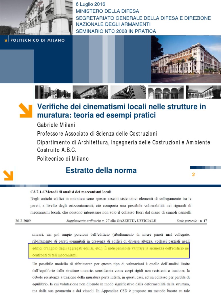 Edifici esistenti in muratura, comportamento non 3