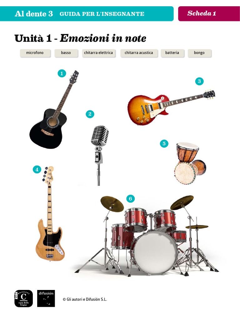 microfono basso chitarra elettrica chitarra acustica batteria bongo