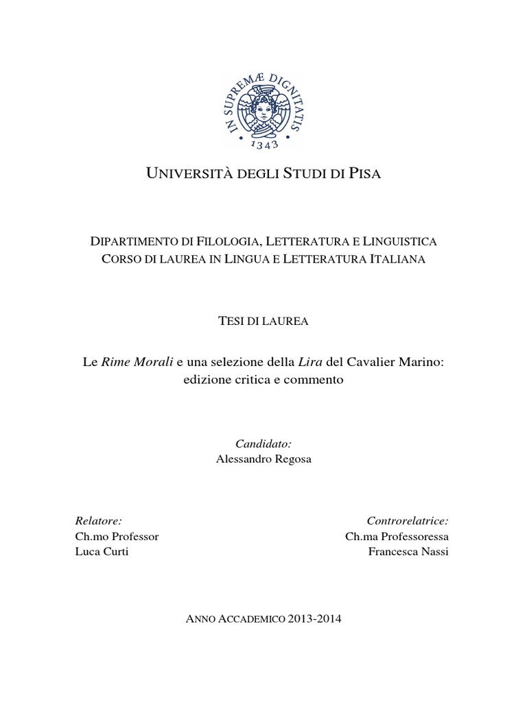 La scelta delle Rime Morali (che occupa la prima sezione della tesi) vuole cimentarsi