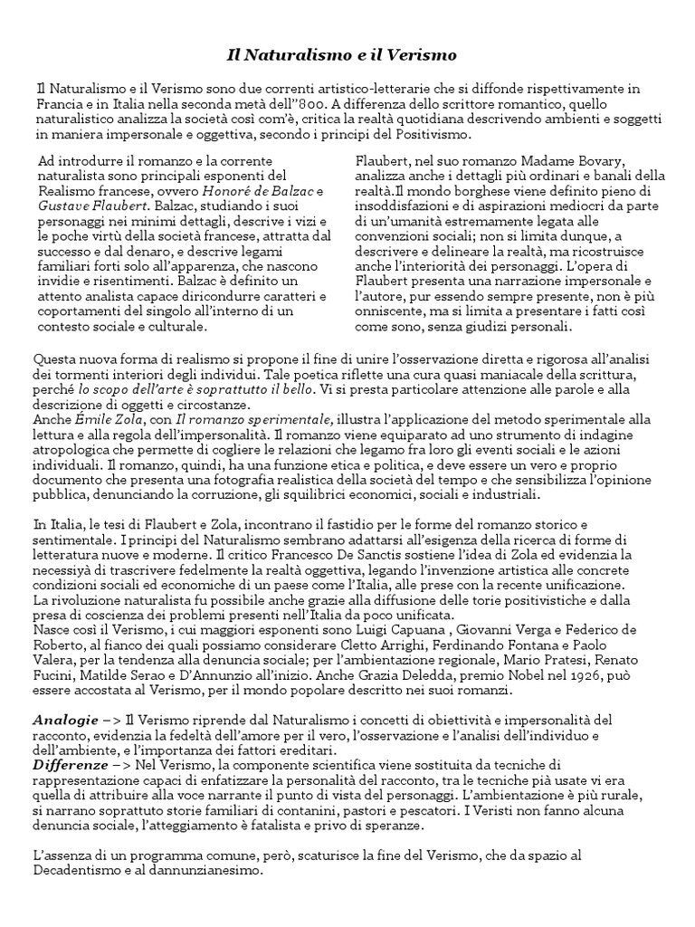 Il Naturalismo e il Verismo sono due correnti artistico-letterarie che si diffonde rispettivamente in