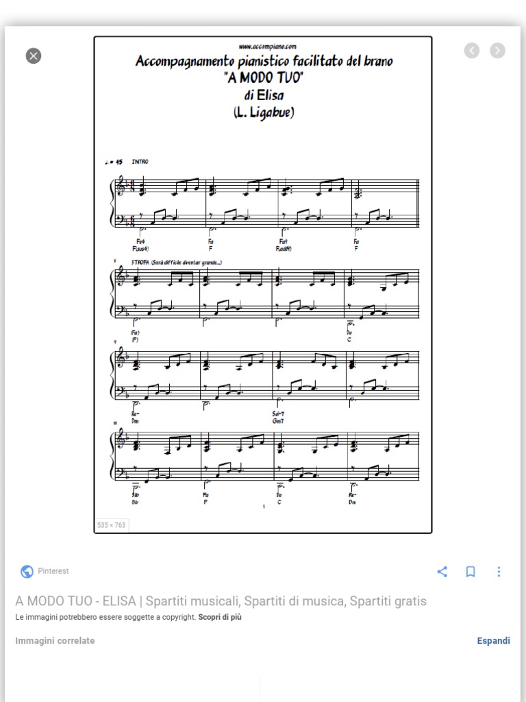 A MODO TUO - ELISA | Spartiti musicali, Spartiti di musica, Spartiti gratis