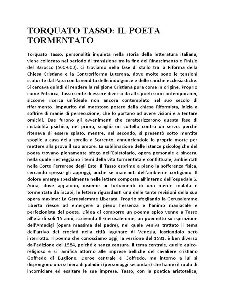 opera maxima: La Gerusalemme Liberata. Proprio sfogliando la Gerusalemme