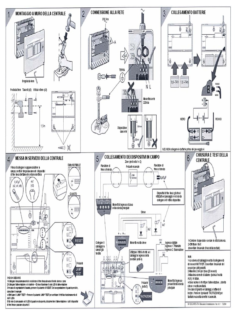 4-Effettuare il LAMP TEST – Premere il pulsante LAMP TEST per verificare l’effettivo funzionamento di buzzer. Premere il pulsante TACITAZIONE per
