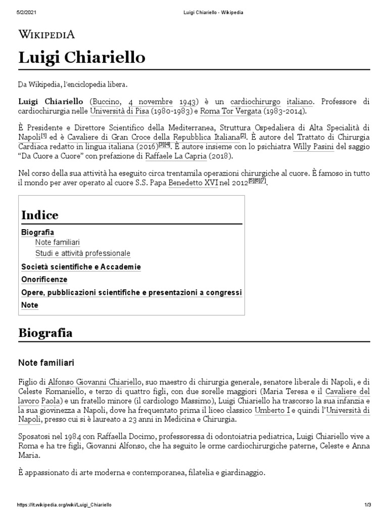 1. ^ Luigi Chiariello, il cardiochirurgo che ha operato Benedetto XVI, guiderà il Centro Cuore della