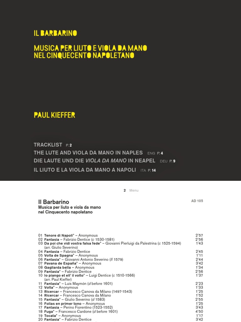 Barbarino lute book sono una copia di un volume più anti- stituzione degli Spagnoli da Napoli, nel 1547, Fabrizio e suo