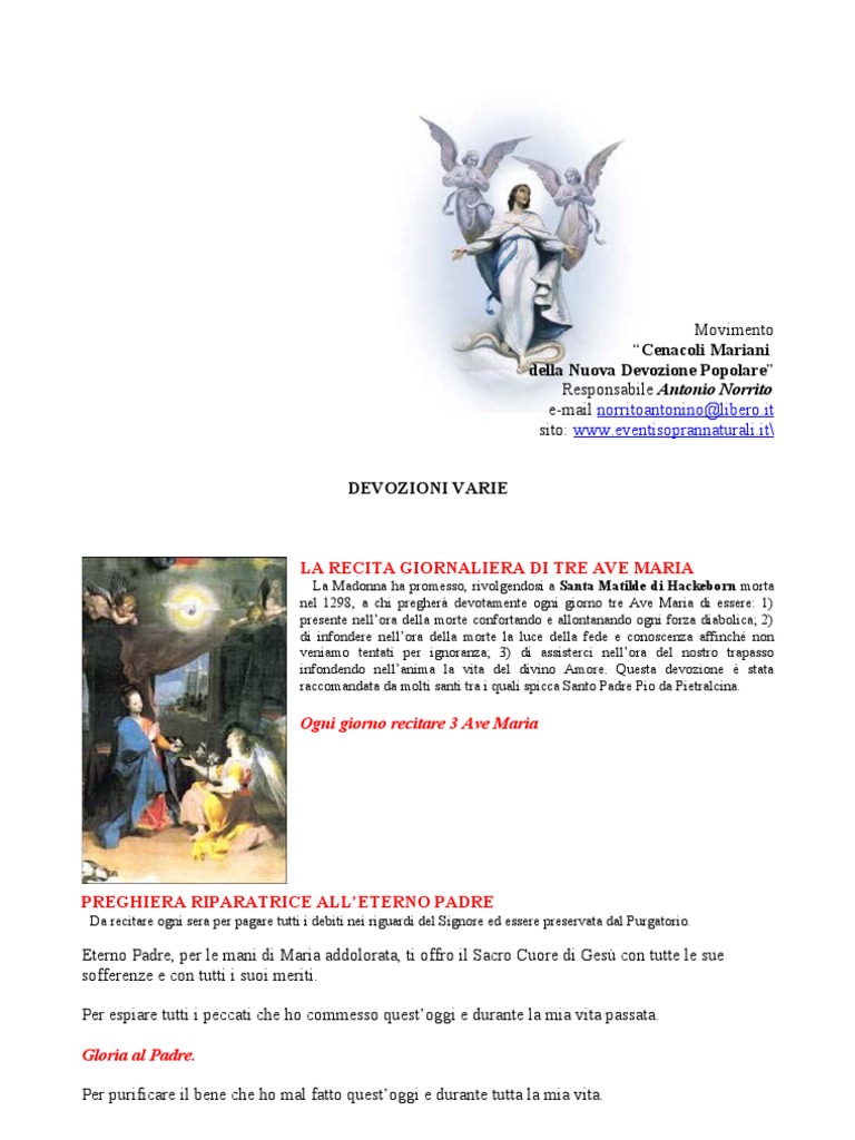 3 Padre Nostro. 1 Ave Maria. 1 Gloria al Padre