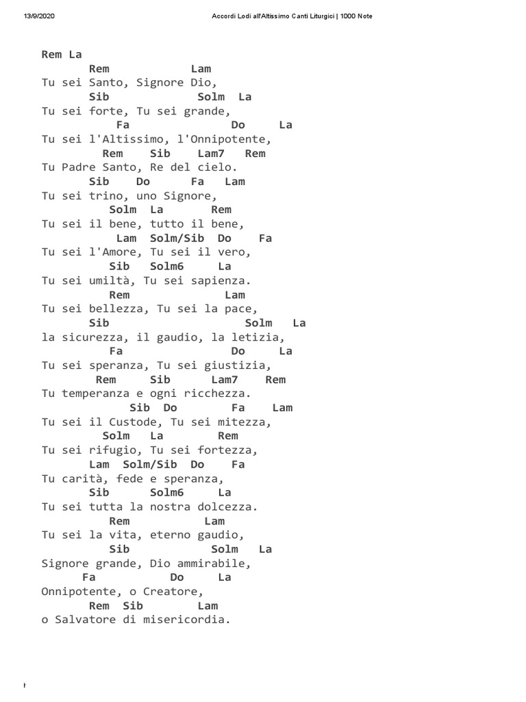 13/9/2020 Accordi Lodi all'Altissimo Canti Liturgici | 1000 Note