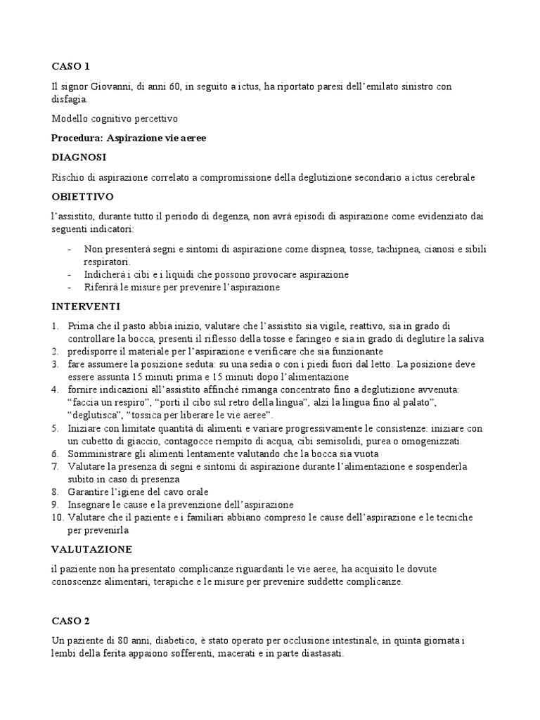 L’assistito entro 24-72 h non avrà episodi di aspirazione nelle vie aeree come evidenziato dai