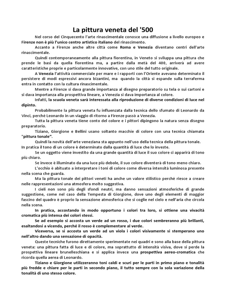 Tutta la pittura veneta tiene conto del colore e i pittori dipingono la natura senza disegno