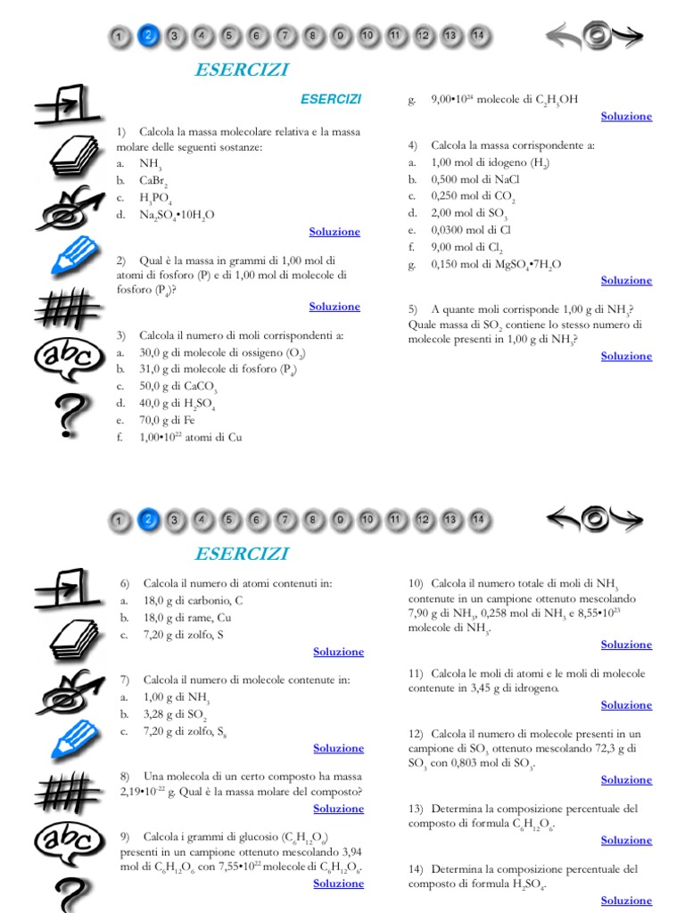 molare delle seguenti sostanze: 4) Calcola la massa corrispondente a: