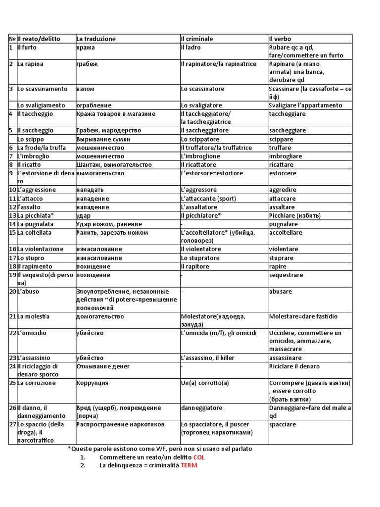 5. Il criminale/delinquente/malvivente–преступникTERM