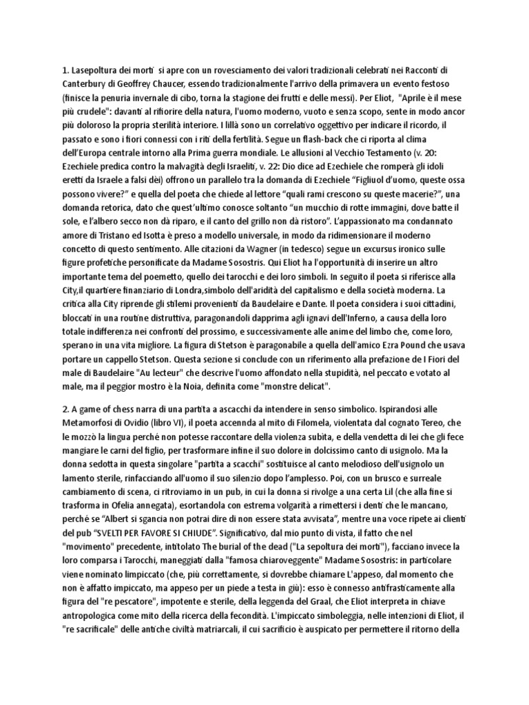 figure profetiche personificate da Madame Sosostris. Qui Eliot ha l'opportunità di inserire un altro