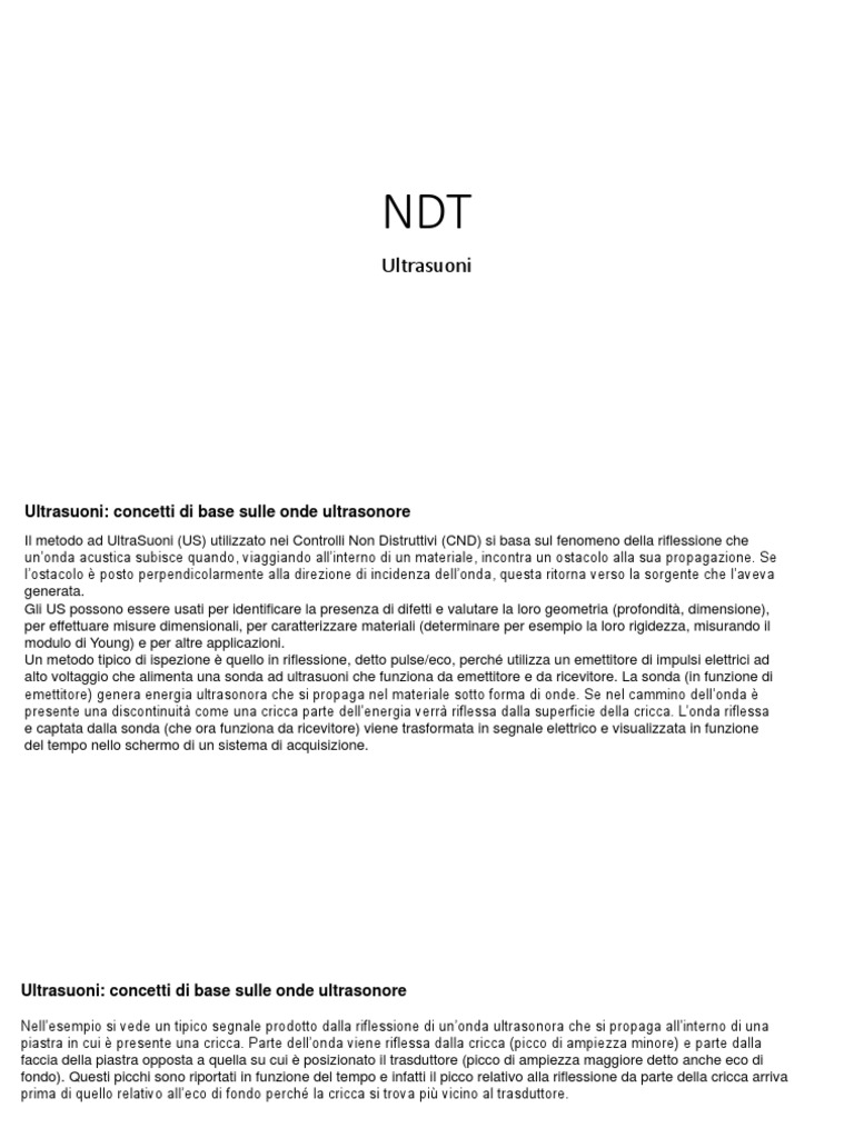 Il metodo ad UltraSuoni (US) utilizzato nei Controlli Non Distruttivi (CND) si basa sul fenomeno della riflessione che