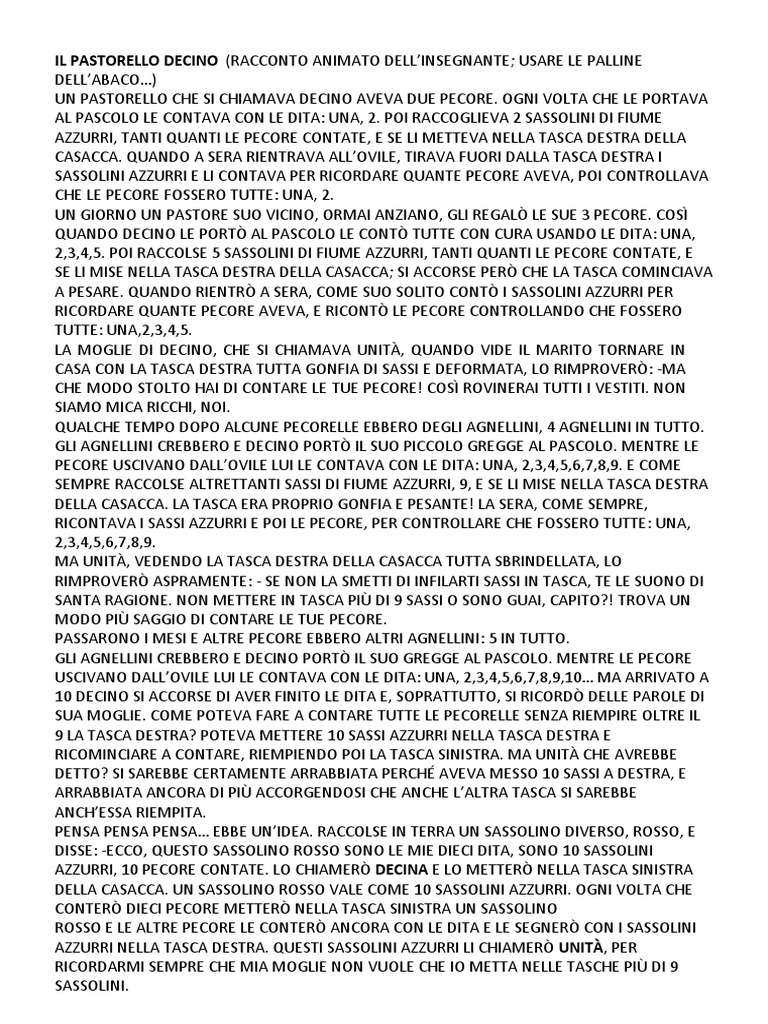 QUANDO DECINO LE PORTÒ AL PASCOLO LE CONTÒ TUTTE CON CURA USANDO LE DITA: UNA,