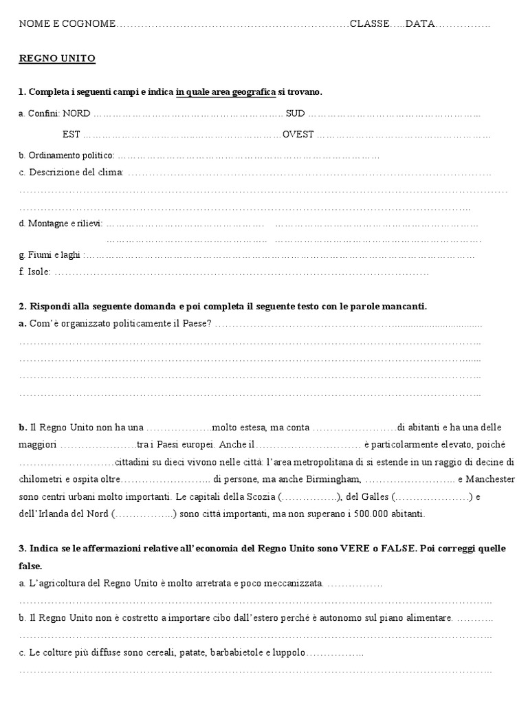 b. Il Regno Unito non ha una ……………….molto estesa, ma conta ……………………di abitanti e ha una delle