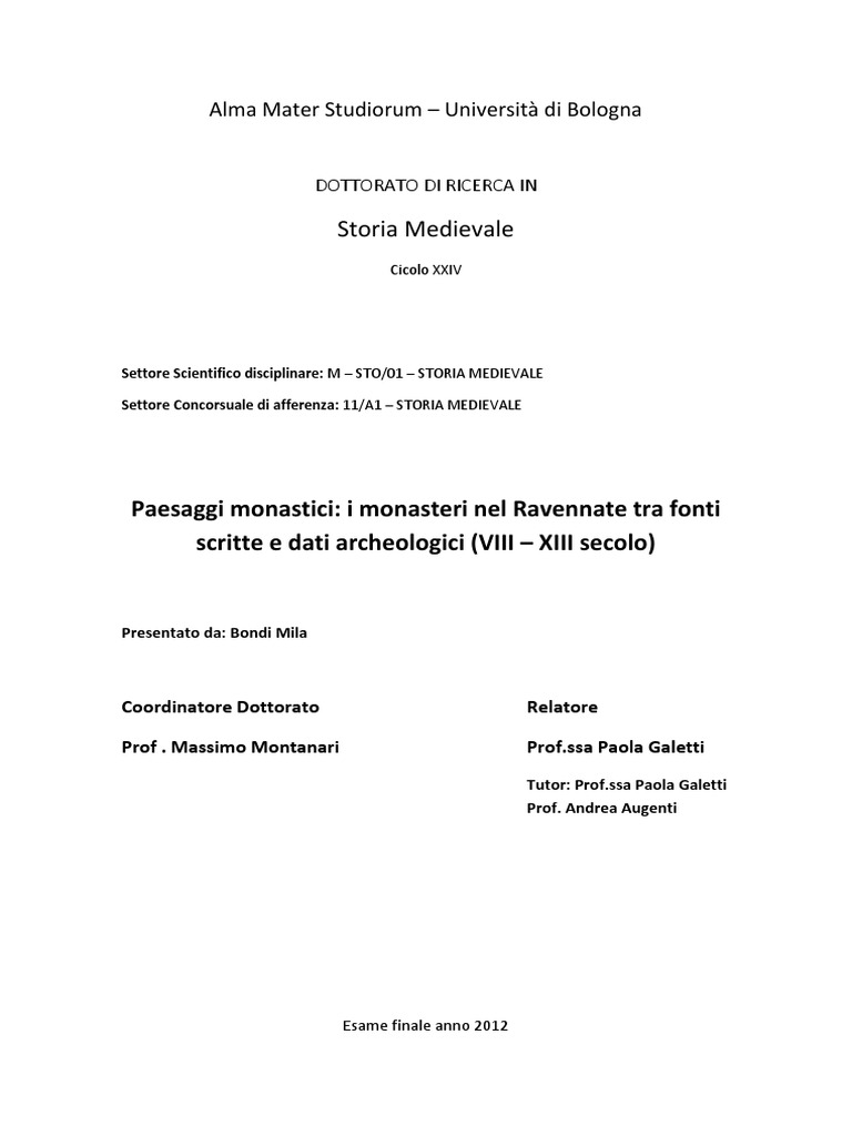 PADOVANI, A. (1997). Insediamenti monastici nella diocesi di Imola dalle origini al sec. XIII.