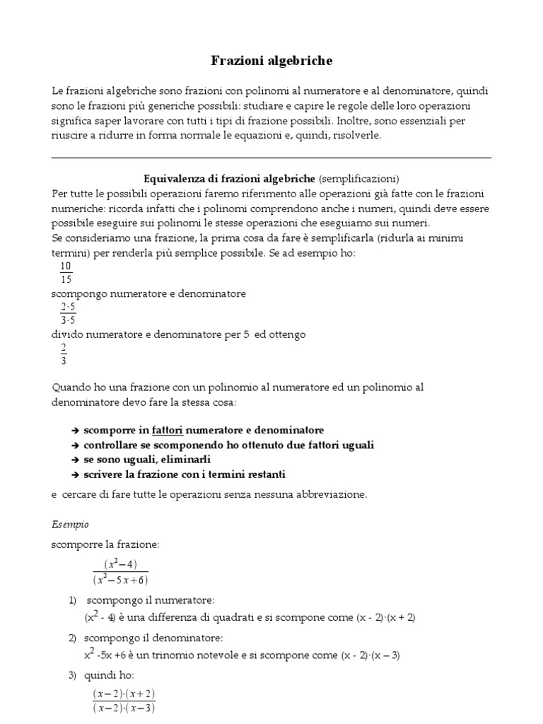 Le frazioni algebriche sono frazioni con polinomi al numeratore e al denominatore, quindi