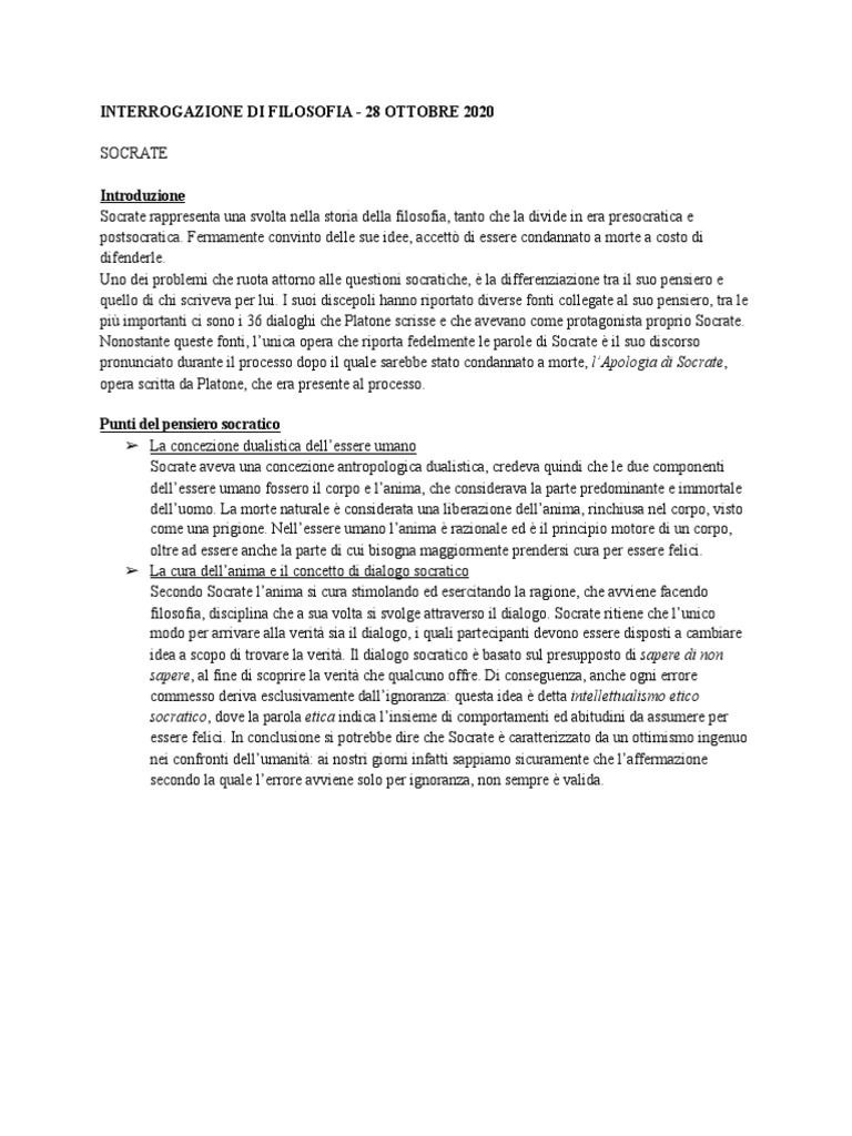 INTERROGAZIONE DI FILOSOFIA - 28 OTTOBRE 2020