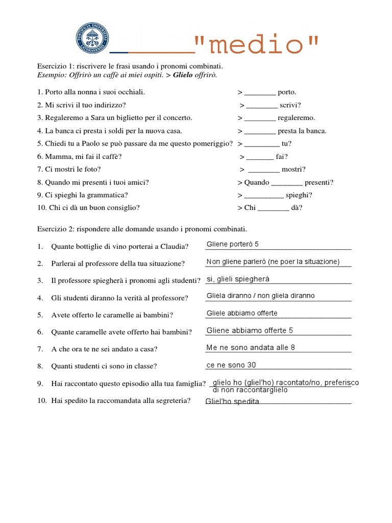 Esercizio 2: rispondere alle domande usando i pronomi combinati.