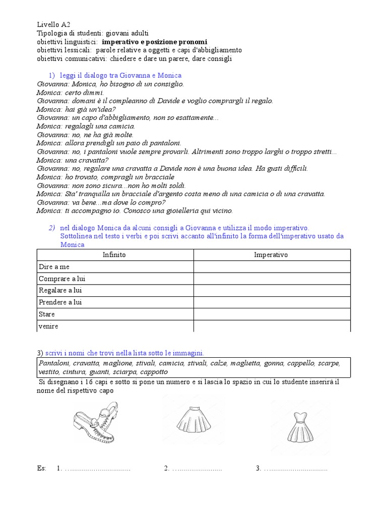 obiettivi lessicali: parole relative a oggetti e capi d'abbigliamento