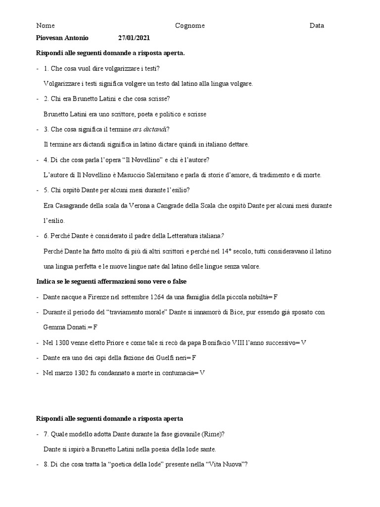 - 8. Di che cosa tratta la “poetica della lode” presente nella “Vita Nuova”?