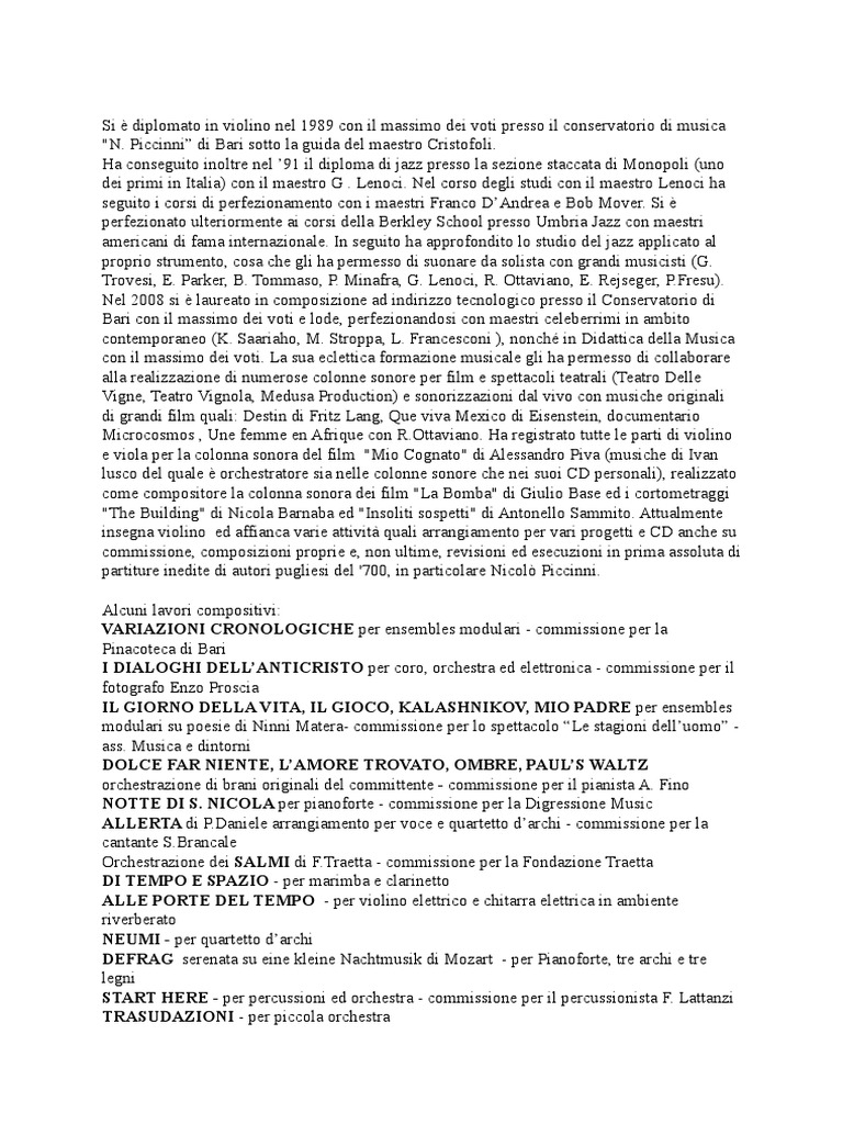 Ha conseguito inoltre nel ’91 il diploma di jazz presso la sezione staccata di Monopoli (uno