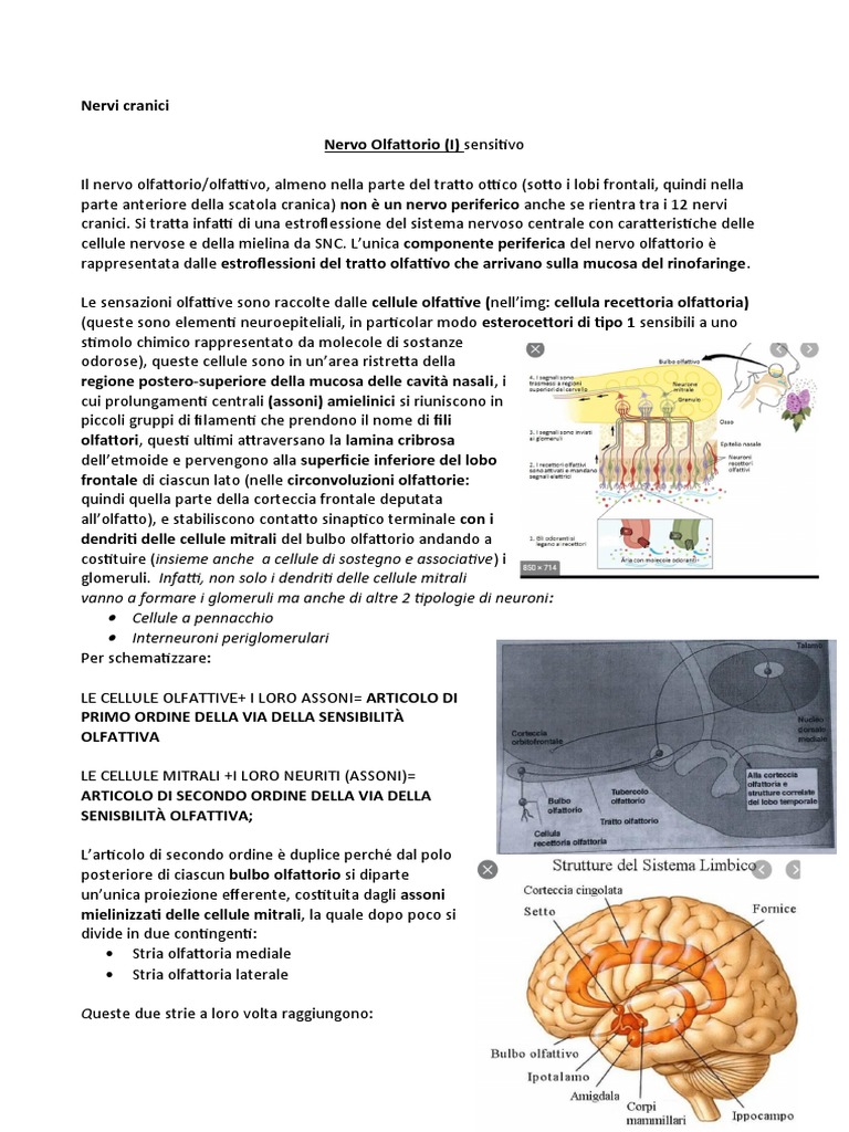 cellule nervose e della mielina da SNC. L’unica componente periferica del nervo olfattorio è
