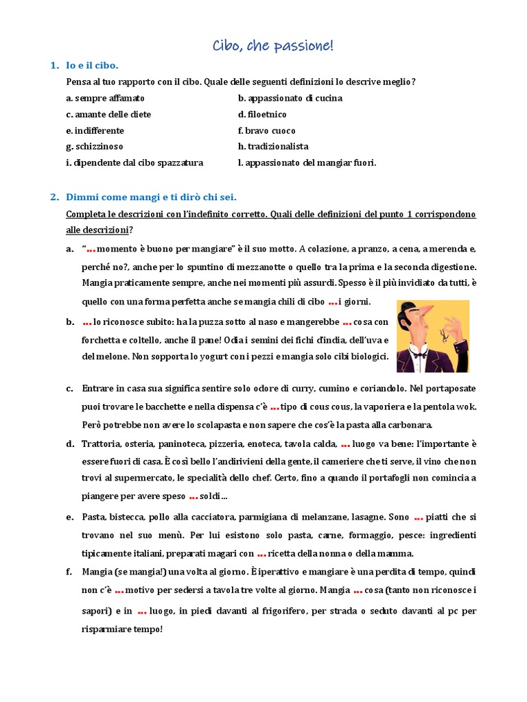 Completa le descrizioni con l’indefinito corretto. Quali delle definizioni del punto 1 corrispondono