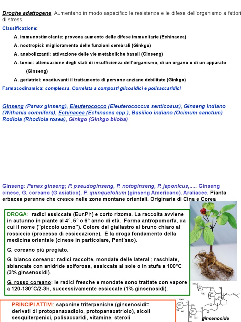cinese, G. coreano (G asiatico). P. quinquefolium (ginseng Americano). Araliacee. Pianta